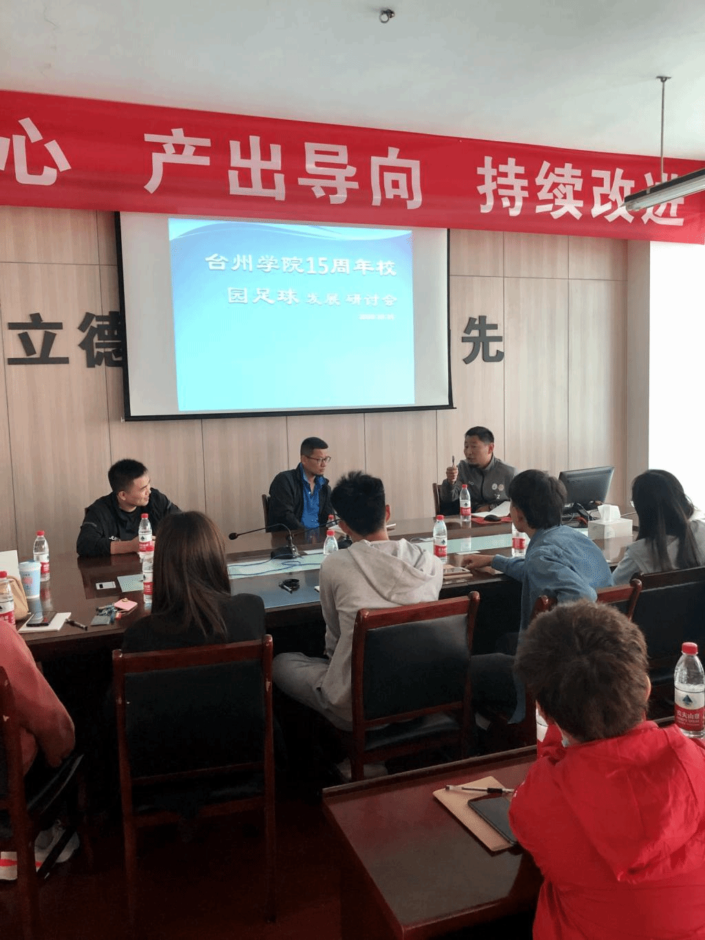 10月25日上午,足球队组织了关于校园足球发展研讨会,学长学姐们分享了他们工作经验以及在校园足球方面的心得。优秀员工金裕峰、田冬平、单芳英、朱舒情等先后发表了关于足球俱乐部成立、校园足球教学训练、竞争、后勤保障以及校园足球文化建设方面的建议,让现役队员受益匪浅。