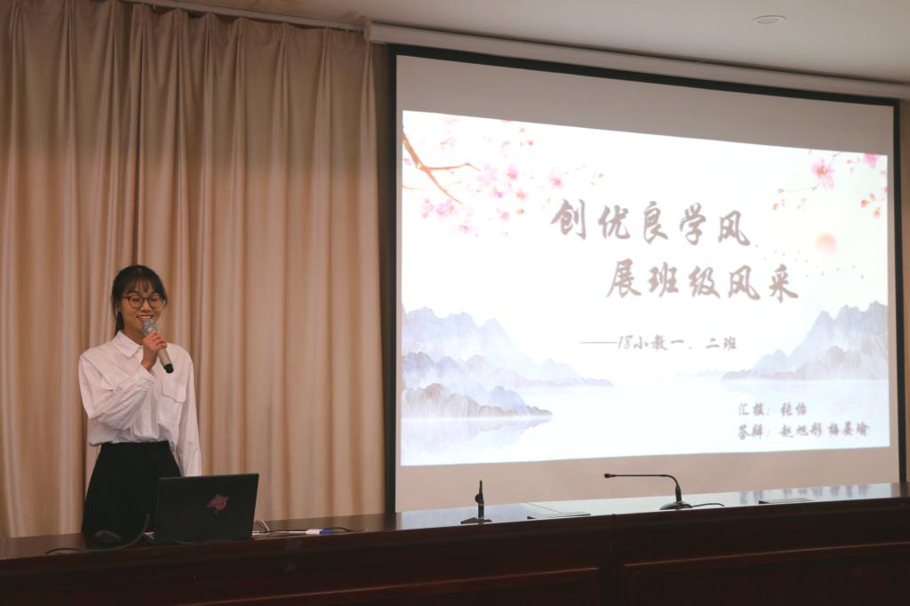 活动伊始,主持人林姝琦简要介绍了活动的流程及参与的班级。在主讲环节中,每个班级的主讲人详细阐述了本班班风建设与对未来的展望,通过ppt展示班级风貌及集体所获各项荣誉。针对每班不同的学风与班级氛围,评委老师提出相应问题,答辩员工认真思考流利作答,并仔细听取老师的建议。