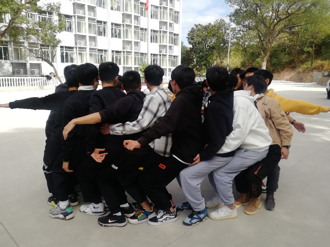 接下来是素质拓展,由教官带训,通过拍拍操的训练,加强了反应能力,也迅速活跃起了现场气氛。素质拓展的第二个环节则是通过团队游戏“坐人椅”,增强了团队凝聚力。
