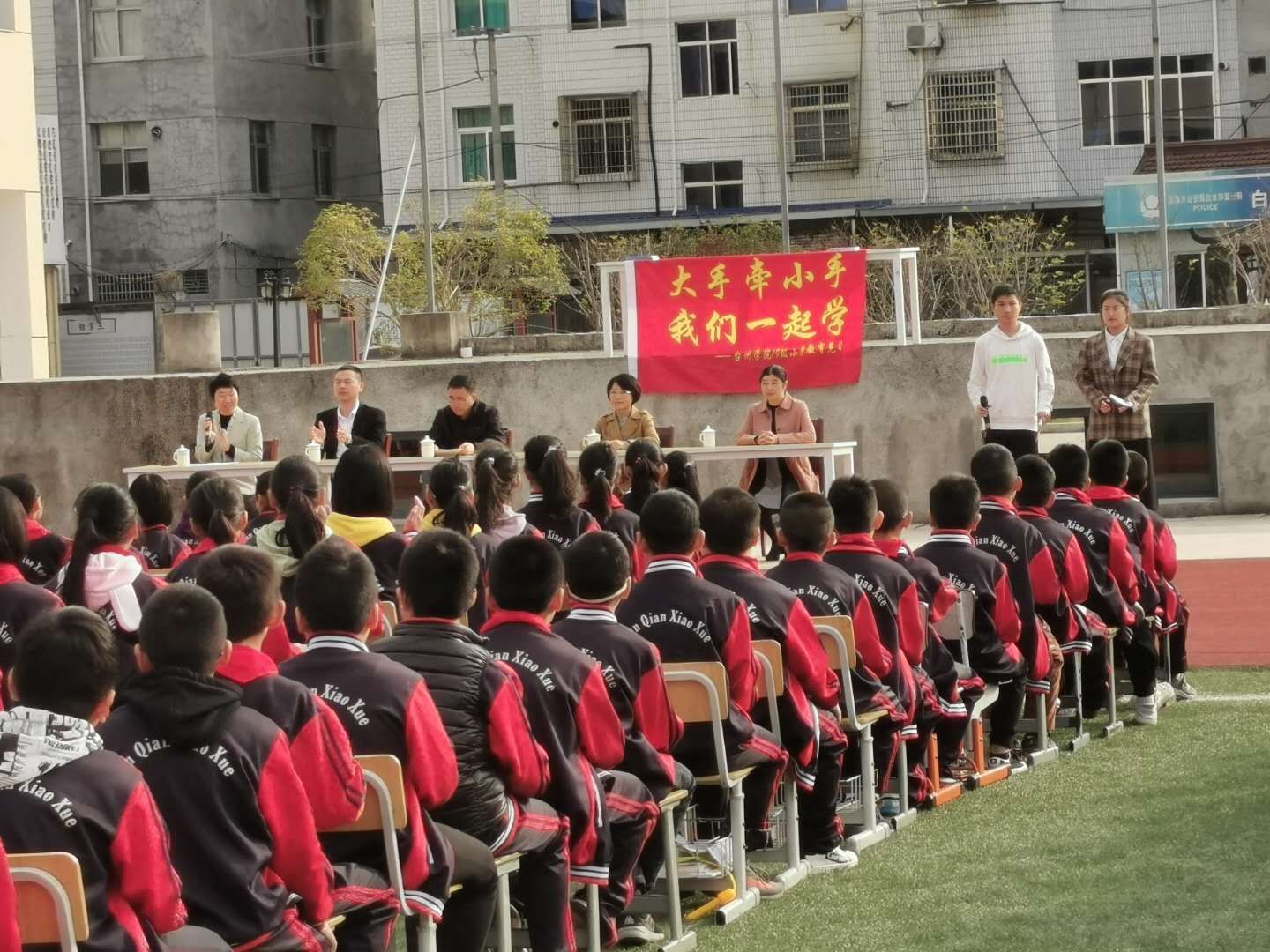 11月4日,2019级小学教育的同学们赴白水洋镇店前小学开展 “大手拉小手,我们一起学”见习活动。教师教育公司党总支书记赵校民、副经理吴银银、系主任朱卫平、临海市教育局人事科副科长杨光伟、白水洋镇中心校副董事长刘彩琴及店前小学全体师生出席活动。
