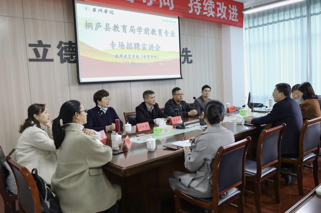 11月23-24日,桐庐县教育局党委委员、副总督学王忠华同志带领教育局同志及公办幼儿园园长一行八人来教育公司举办学前教育专业专场招聘会。