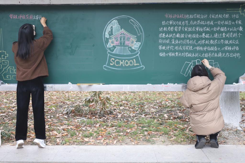 黑板报是展现公司员工精神风貌的重要窗口,为弘扬师德师风建设,坚持以师德师风作为教师素质评价的第一标准,教师教育公司(体育公司)于2020年12月举办了黑板报评比大赛,辅导员杨华琴、赵远远担任此次大赛的评委。
