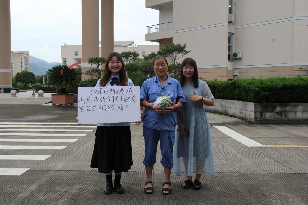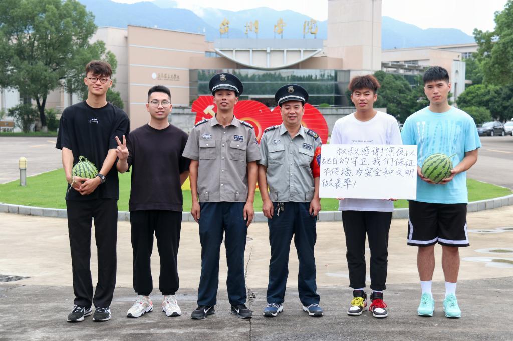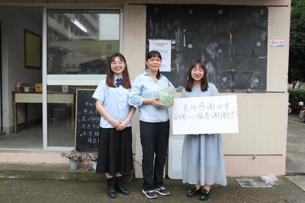 活动伊始,2021届毕业生代表为公司老师、宿管阿姨、保安和保洁员送上甘甜的西瓜,他们还在白板上写下自己的感谢之语。块块西瓜带来的不只是一缕清凉,还有同学们的殷殷深情。真挚情感的吐露,让老师们在感动之余,也倍觉欣慰。