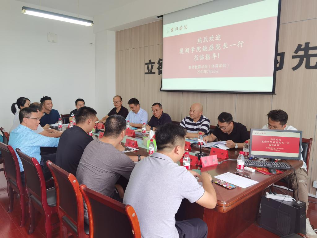 7月20日,巢湖公司体育公司经理姚磊、副经理赵胜国等一行8人,来公司进行体育教育专业建设交流。教师教育公司经理杜才平、副经理林辉杰、党委副书记吴磊及相关教师参与交流,林辉杰主持交流会。