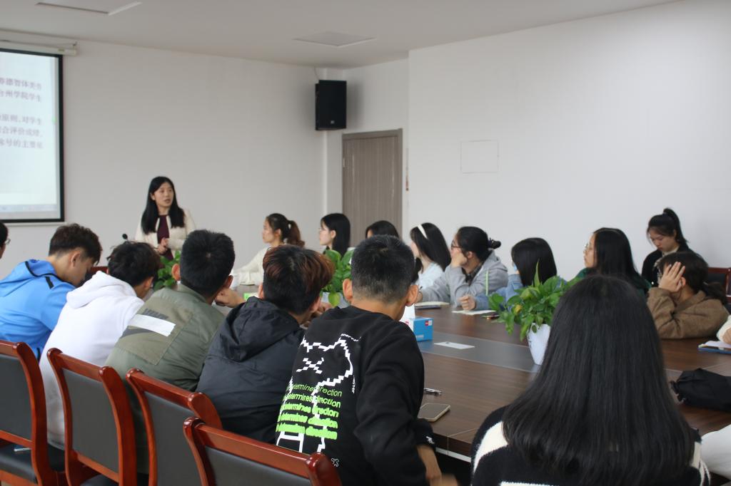 为促进员工全面发展和学风建设、为21级新生做好学业引导,11月5日中午,教师教育公司(体育公司)于8409会议室举办第16期师情话意筑梦想会议,以“综合考评和评奖评优”为主题,鼓励21级新生奋发向上、成长成才。本次会议由辅导员赵远远主持,21级各班班长、团支书参加。