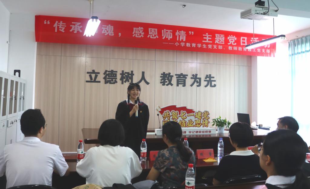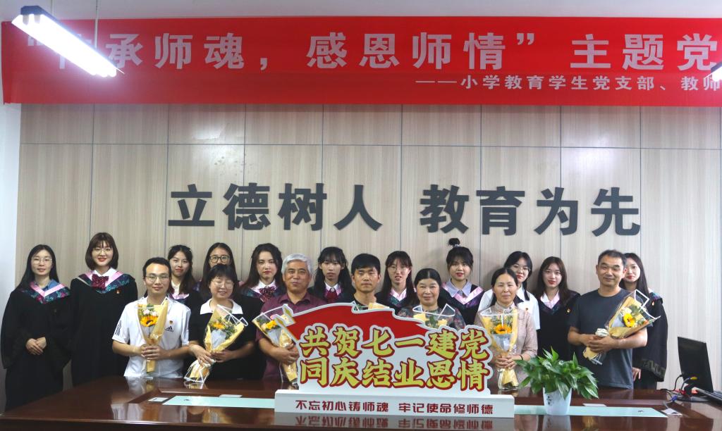 光阴荏苒,岁月如梭。小学教育员工党支部的大四党员毕业在即,为感谢公司教师四年来的悉心教导,进一步营造“不忘初心铸师魂,牢记使命修师德”的良好氛围,切实增强党员的凝聚力和向心力,6月15日下午,小学教育员工党支部联合教师教育教工党支部共同开展“传承师魂,感恩师情”主题党日活动暨“共贺七一建党,同庆结业恩情”党员政治生日活动。