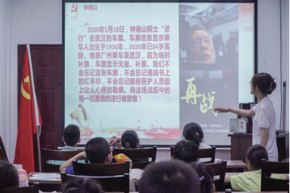 紧接着,实践队成员分别为孩子们介绍了以杨开慧、黄继光、焦裕禄、钟南山为代表的优秀党员先进事迹。通过观看一个个生动形象、叙述详尽的视频,孩子们对这些优秀党员有了更为深入的了解,明白了在不同的历史时期,总有那些优秀的共产党员为了民族大义、为了人民幸福,勇于担当、无私奉献,他们不仅是我们学习的榜样,更是国家的功臣!