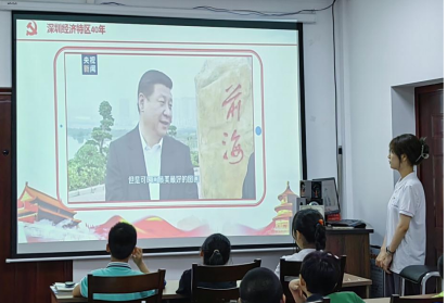随后,实践队成员以深圳经济特区、上海浦东新区、航天大事记、基础建设为切入点,带领孩子们纵观近年来祖国发生的日新月异的变化,深刻体会到在中国共产党的领导下,经全党和全国各族人民几十年的共同努力,我国的社会主义建设事业取得了举世瞩目的伟大成就。同时,实践队成员引导孩子们尝试说一说生活中发生在自己身边的变化。