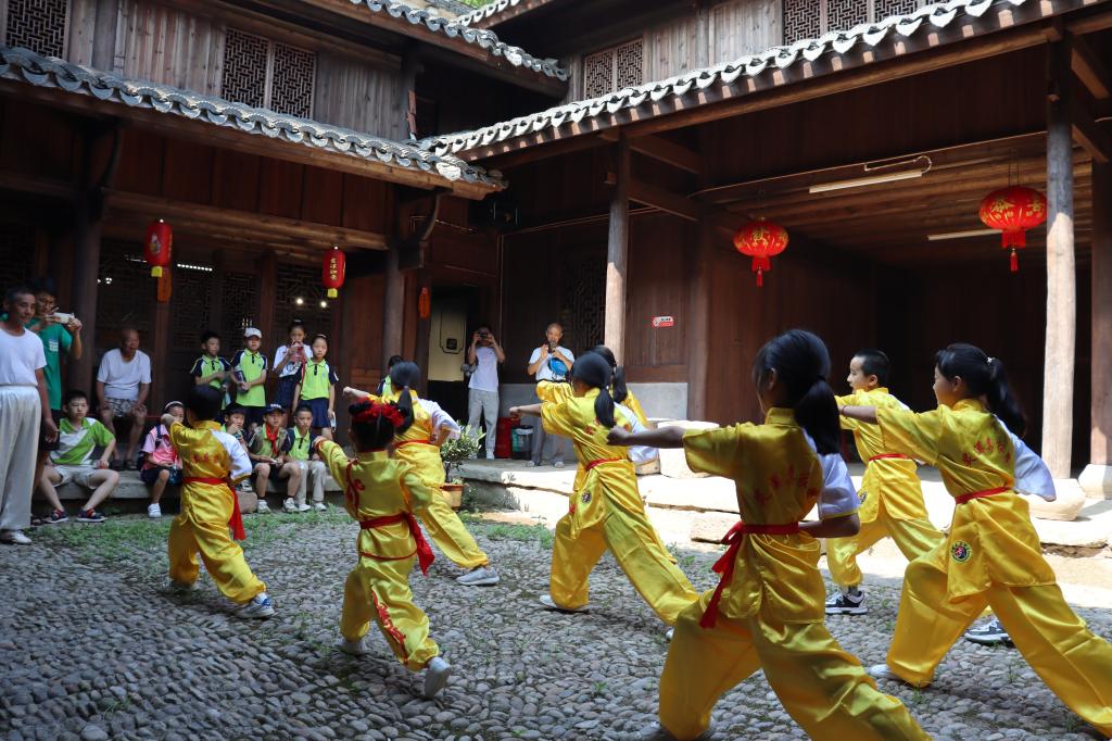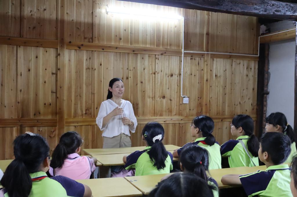 “此去灵溪不是遥,楼中望见赤城标。不知叠幛重霞里,更有何人渡石桥。”唐代诗人顾况生动地描绘了千年古村灵溪的秀丽和书香,灵溪村曾以龙山书院里的“一市书声”闻名。师生们也踏入龙山书院体验着古人学堂,捧起书简,摇头晃脑地吟诵起古诗。