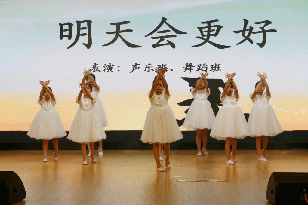 《跆拳有道》展示了小小的身躯也能迸发出巨大的力量。美术班和书法班的两位小健将用自己的功夫给大家带来了精彩绝伦的舞台表演,那干净利落的拳法和矫健的身姿,都尽情地展示了属于孩子们的青春风采!而另外两个班级——舞蹈班和声乐班的合作也是别具一格,不同凡响。穿着蓬松的公主裙展示柔美的舞姿,带着甜甜的笑脸展示嘹亮的歌声,用舞蹈与音乐让大家坚信着《明天会更好》,也让所有人期盼着光明的未来!