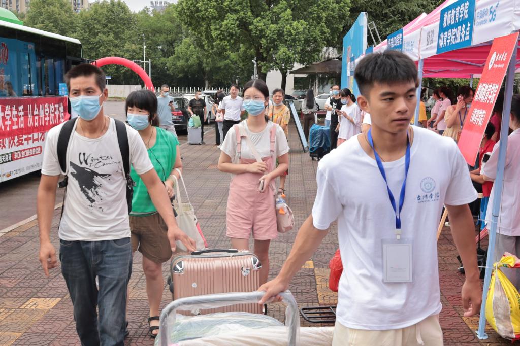 团学会干部与志愿者们的身影,时刻窜梭于校门、迎新点位、新生宿舍之间,他们热情周到地帮助新生领取报道的相关材料,运送行李,带领新生前往宿舍,熟悉校园。