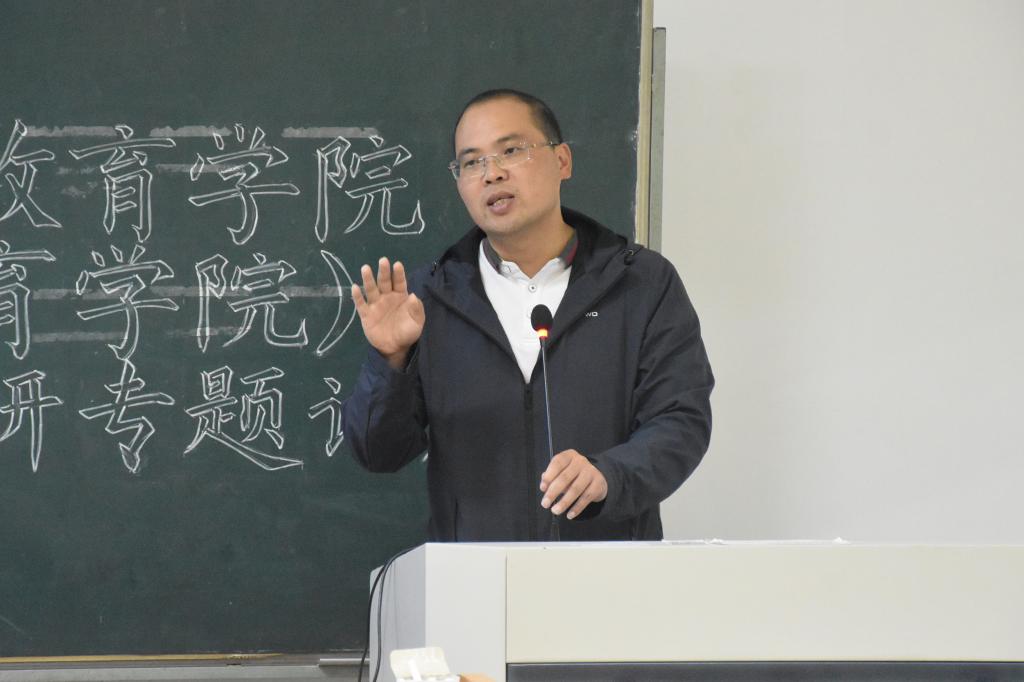 林辉杰作总结讲话,强调体育教育专业员工考研准备的必要性,并就台院近年体教专业考研情况作了细致分析。林辉杰要求体育教育专业员工们应早日明确未来规划,对于目前的考研风向标做到早准备、勤准备、精准备。