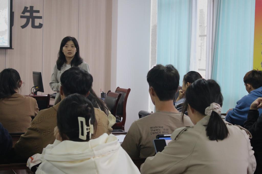 赵远远老师重点强调了员工参与评奖评优不可忽略的硬性要求,对加分、扣分事项逐一分析,动员2022级员工积极准备普通话二级乙等测试和英语四六级考试等。她阐明同学们要以学业为根本,将学习的态度随时带入到日常生活中,拒绝过度功利,重视各项能力的培养,千万避免通报批评和各类处分,遇事积极与老师沟通,并主动了解公司规章制度和综合考评相关事项。