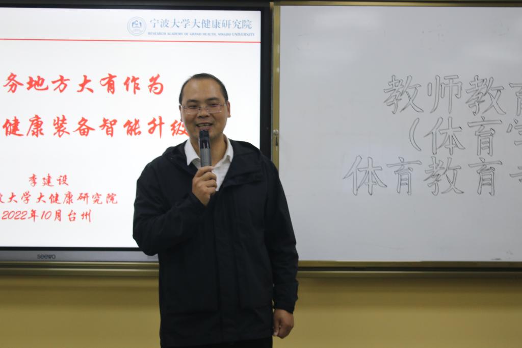 10月27日,教师教育公司邀请宁波大学教授、博士生导师李建设作《体育服务地方大有作为,助力运动健康装备智能升级》学术讲座。教师教育公司副经理林辉杰主持讲座,创业公司经理周瑶和体育教育专业部分师生参加了本次学术交流。