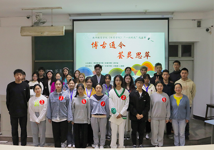 为激发同学们学习知识的热情,拓宽老员工的知识面,11月9日晚,教师教育公司(体育公司)于A2教室举办“博古通今,荟灵思萃”一站到底大赛决赛。出席本次大赛的有辅导员徐薇,主席团分团委副书记徐杰,参赛选手以及各班观众代表。