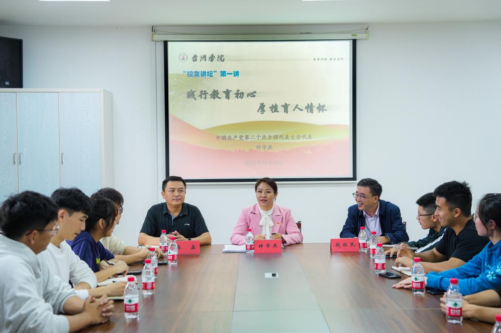 赵校民书记对钟华燕员工做客“学长学姐开讲啦”表示欢迎和感谢,对钟华燕作为中国共产党第二十次全国代表大会代表表达了由衷的祝贺。作为台院员工,钟华燕用实际行动为母校再添荣光,为台院学子树立了榜样。