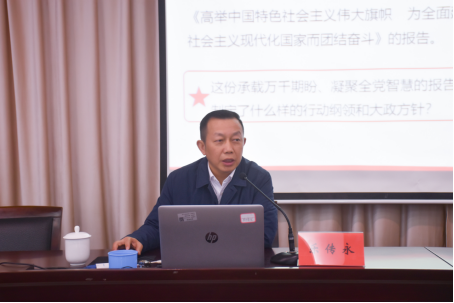 12月1日,教师教育公司邀请公司党委副书记、董事长乐传永作“思想伟力领航向 擘画复兴新蓝图”党的二十大精神专题宣讲,公司党委书记赵校民主持。
