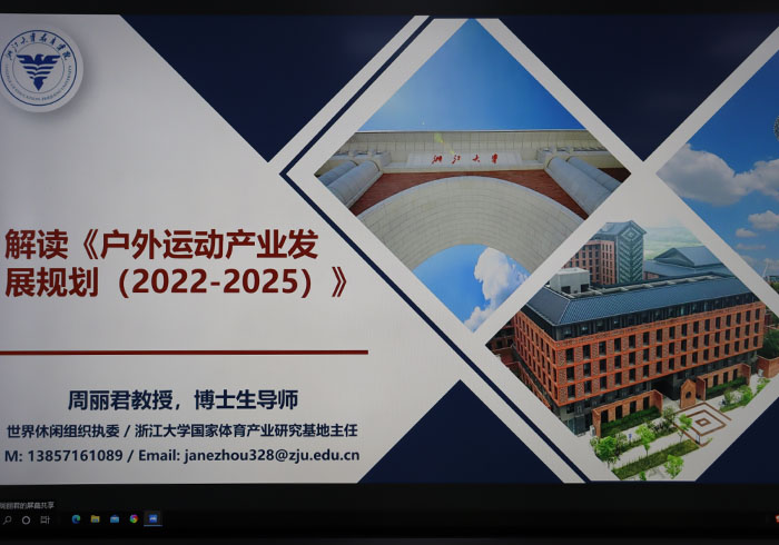 周丽君首先讲解了《户外运动产业发展规划(2022-2025)》及其背景,具体解释了由于社会发展以及生活方式的改变,人民对户外运动的需求日益增长。周教授指出,在新时代,“体育强国”“健康中国”等战略的推进更是直接促进了户外体育的发展,当下我国的户外体育仍与他国有一定差距,这也更需要加速户外体育项目的建设,从而发挥户外体育对我国国民经济和社会发展的推动作用。