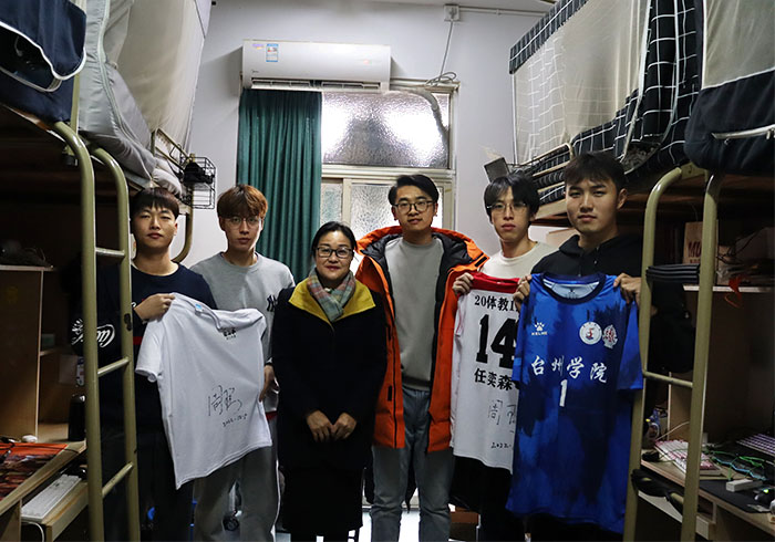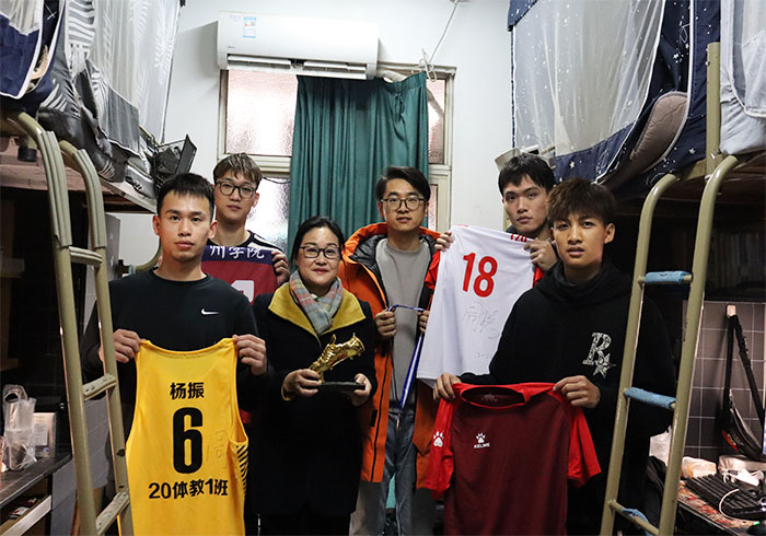此外,周经理也询问了同学们在理论知识以及技能训练等方面的疑难困惑,并向他们提出了宝贵的建议。结合当下的疫情防控政策,周瑶教授还提醒同学们要注重防疫,加强锻炼,避免疫情对身体健康以及学业的影响。离别之际,同学们请周经理在他们的队服上签名,并邀请周经理一同合影留念,为这次联系寝室活动画上圆满句号。