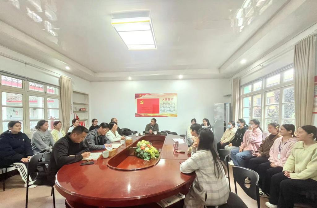 调研组与天台县教育局党委副书记赵国浪、党委委员安良远及人事科负责人杨优显开展座谈交流。会上,吴银银介绍了公司小学教育专业在人才培养方面的优势与特色,希望与天台教育局在小学全科教师培养方面继续加强联系,保持长期稳定的合作。同时针对定向生培养现状,吴银银诚邀天台教育局赴校与天台籍员工开展座谈交流、专题讲座,强化定向生过程管理和监督考核。吴磊则对公司员工管理相关举措进行了详细介绍。