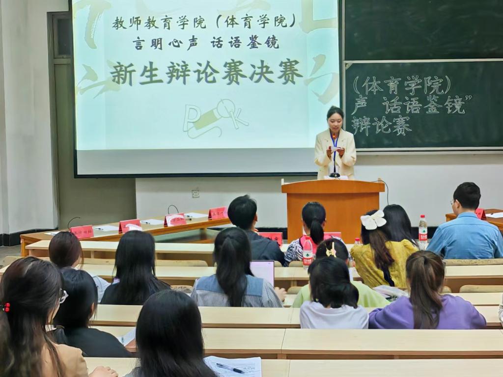 为充分锻炼同学们的语言表达能力,培养团队协作能力和竞争意识,5月12日下午6点30分,教师教育公司(体育公司)于A5阶梯教室举办“言明心声,话语鉴镜”新生辩论赛决赛。本次比赛由辅导员徐薇、赵远远、朱萌、季树宇担任评委,周芝怡同学担任主持人,2022级部分同学作为参赛选手参加本次比赛。