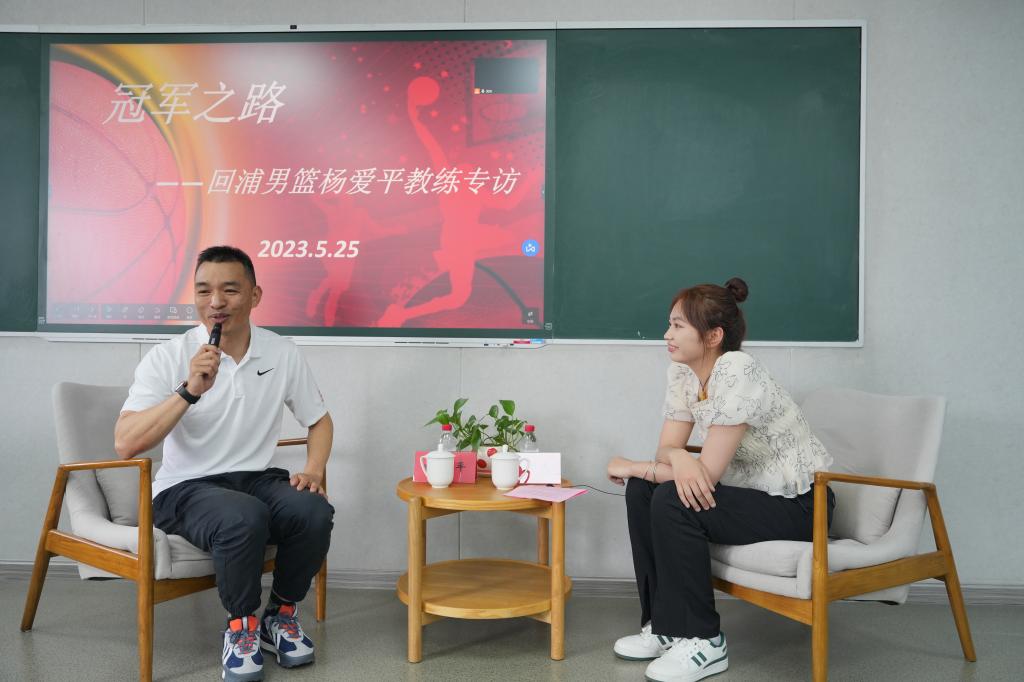 5月25日下午,教师教育公司(体育教育)举办“我与冠军面对面”暨“冠军之路——回浦男篮杨爱平教练专访”活动,回浦中学杨爱平应邀做客本期专访,体教专业师生党员参加,篮球专项员工党员金姗姗主持专访。