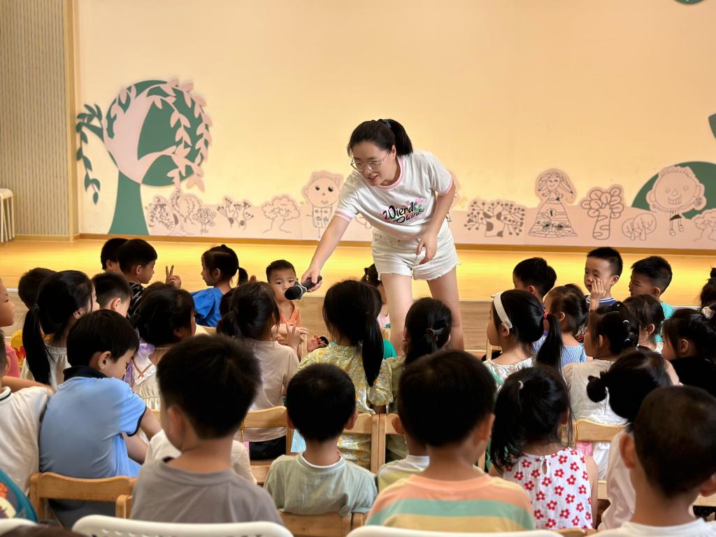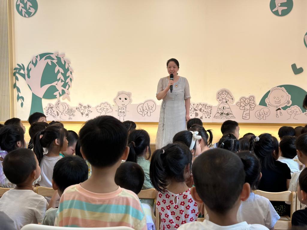 开营仪式伊始,项国飞园长积极调动孩子们的兴趣,小朋友们与实践队成员们进行互动,她希望来自不同年级和班级的孩子们在暑假班能有一个奇妙而愉快的体验。