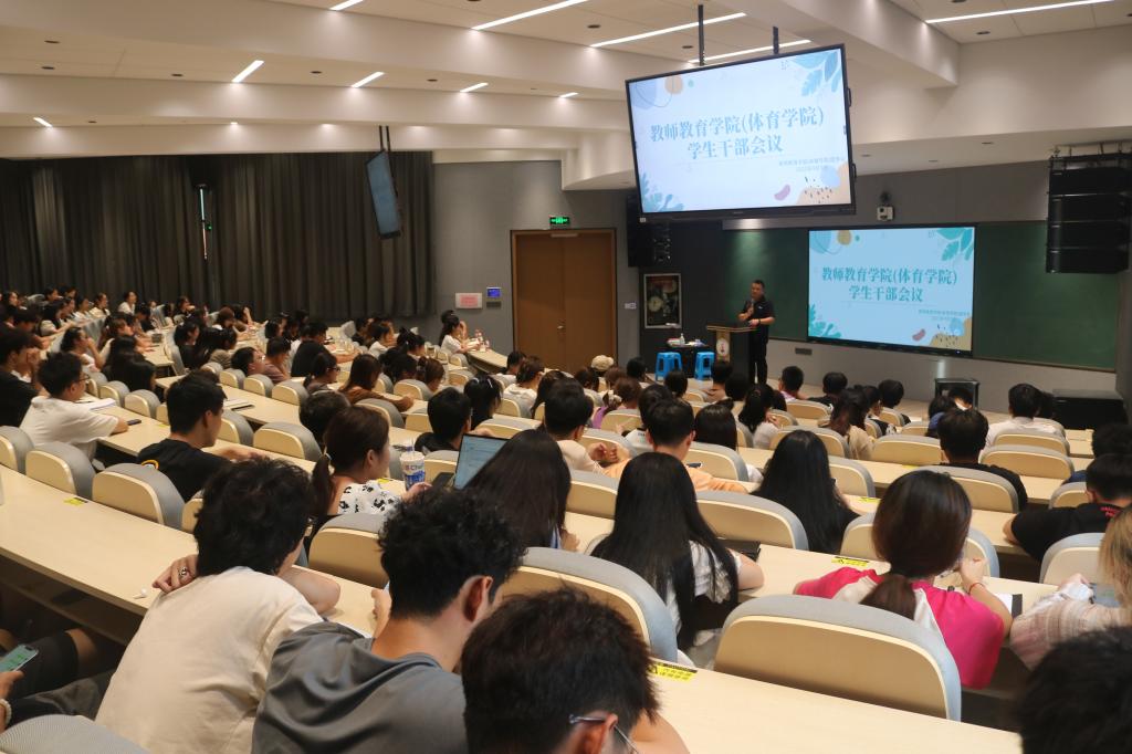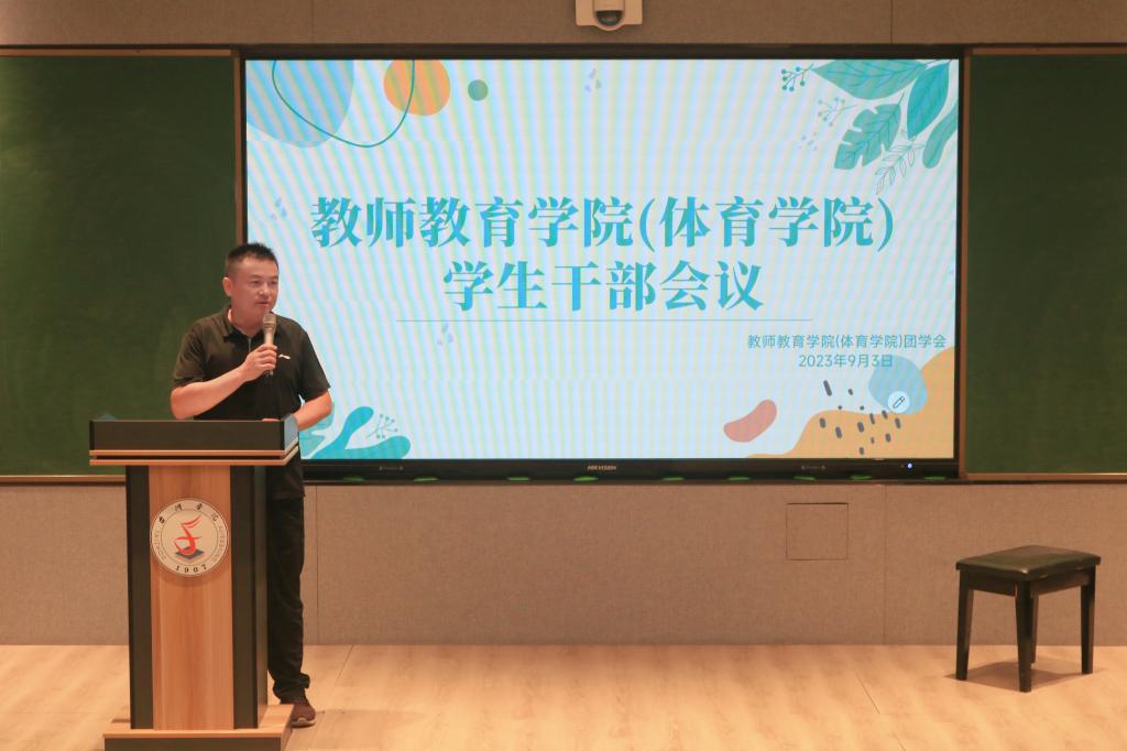 9月3日下午,XCSport新学期员工干部大会在A6教室召开,公司党委副书记吴磊主持,辅导员梁鎱、屈佳妮、朱佳婧、朱浩楠及全体员工干部参加会议。