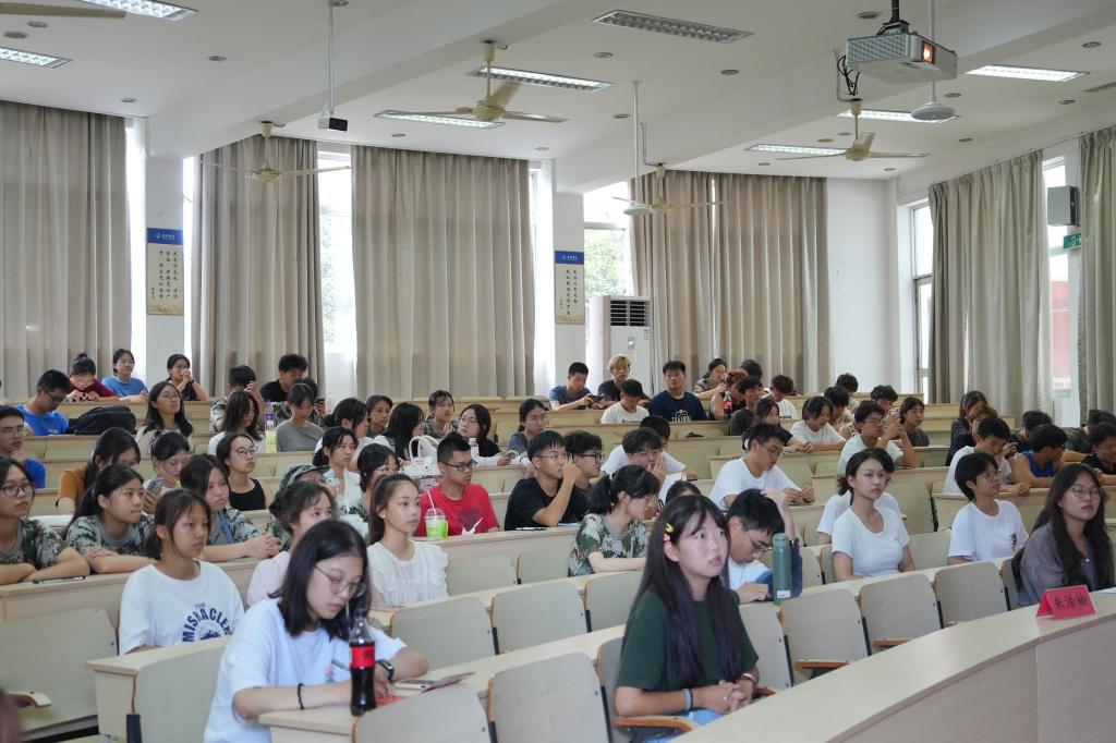 朱浩楠老师在会议之初致辞。她讲到,身为师范生,最重要的是理论结合实际,而拓展性课程恰能帮助同学们与小员工进行深入交流,从中积累实战经验。这不仅让同学们的师范生技能得到提升,还能培养专业认同,扣好职业生涯规划的第一粒扣子。在座的同学们要做到从心出发、不忘初心,保持热爱与情怀,为成为一名人民教师而努力奋斗。