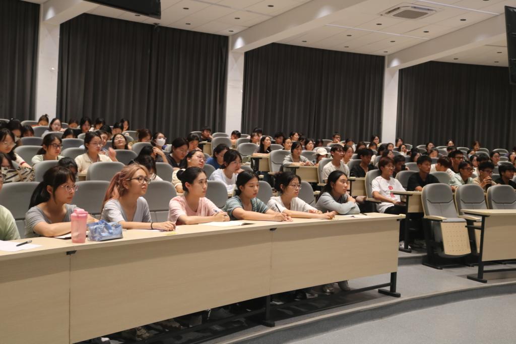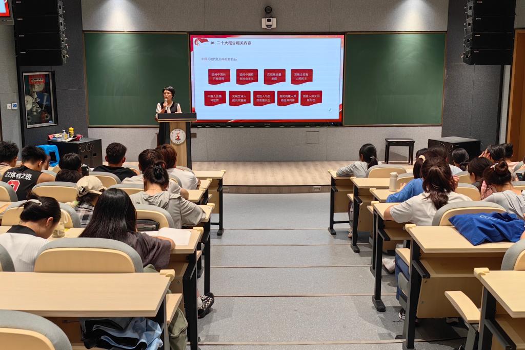 随后,吴银银以《青春筑梦二十大,续写时代新芳华》为题讲授了第一堂专题党课,她从“一个中心任务”“两步走”“三个务必”“四个自信”“五个必由之路”“六个必须坚持”“七个安全”“八项规定”和“中国式现代化的本质要求”几个方面带领学员们重温了二十大报告的相关内容。吴银银阐述了青年成才对于国家发展的重要性,只有“青年强”才能“国家强”。她要求学员们秉持着谦虚谨慎、艰苦奋斗的品质,不忘初心,牢记使命,为实现国家富强、人民幸福贡献自己的力量。