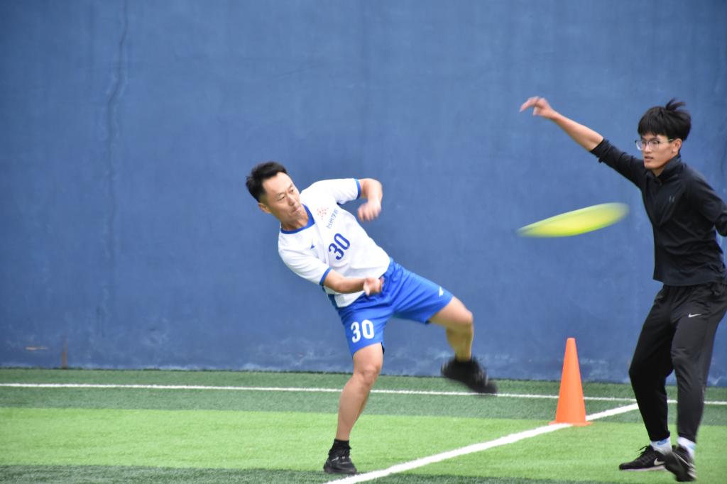 在活动正式开始前,各参赛成员摩拳擦掌,迫不及待地进行热身运动。他们不断跳跃着并借助高抛低接动作寻找手感,在脑海中预演可能在比赛中出现的各种情况,及时调整好身体状态以准备在比赛中展现出自己最佳的飞盘水平。