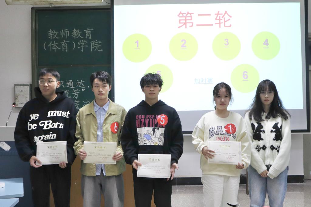 第二轮比赛中,选手们依次上台进行限时两分钟的答题,他们以高昂的斗志参加比赛,认真思考,以出色的表现赢得了满场掌声。经过两轮激烈的竞赛,最终周咨妍、沈鸣岚、徐苏婷和林曼莎四位同学成功晋级校赛。老师们为获奖选手颁奖并合影留念,观众们也用掌声为获奖选手送上最真挚的祝福。
