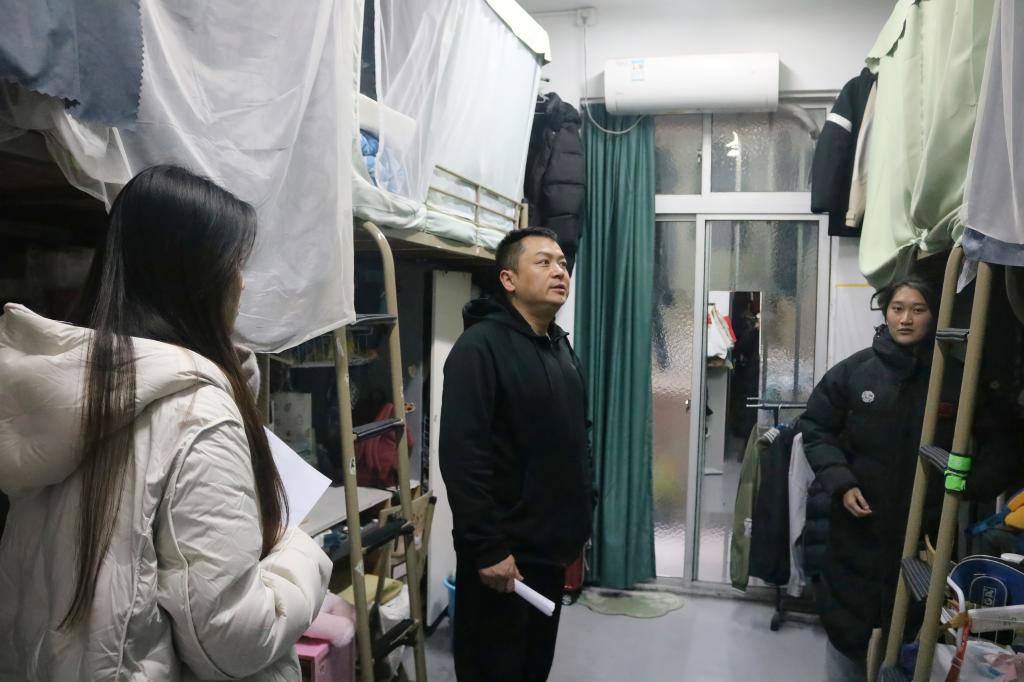 走访开始时,先由员工干部进行敲门询问,随后老师进寝检查。针对部分寝室中存在的明显问题,老师们会当场指出,并提出相应的改进建议。