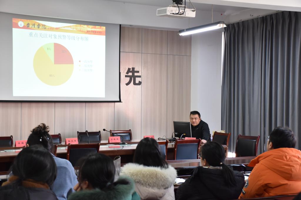 吴磊对本年度公司员工心理健康工作进行汇报,他通报了近期心理健康工作情况,再次强调当前的严峻形势,并就下一步工作安排进行详细部署。他指出,要充分发挥员工群体的朋辈帮扶作用,协助辅导员、班主任形成心理健康教育合力;要强化网格管理,教师须深入班级、寝室了解员工状况,定期摸排重点人群,开展谈话交流,疏解心理危机。