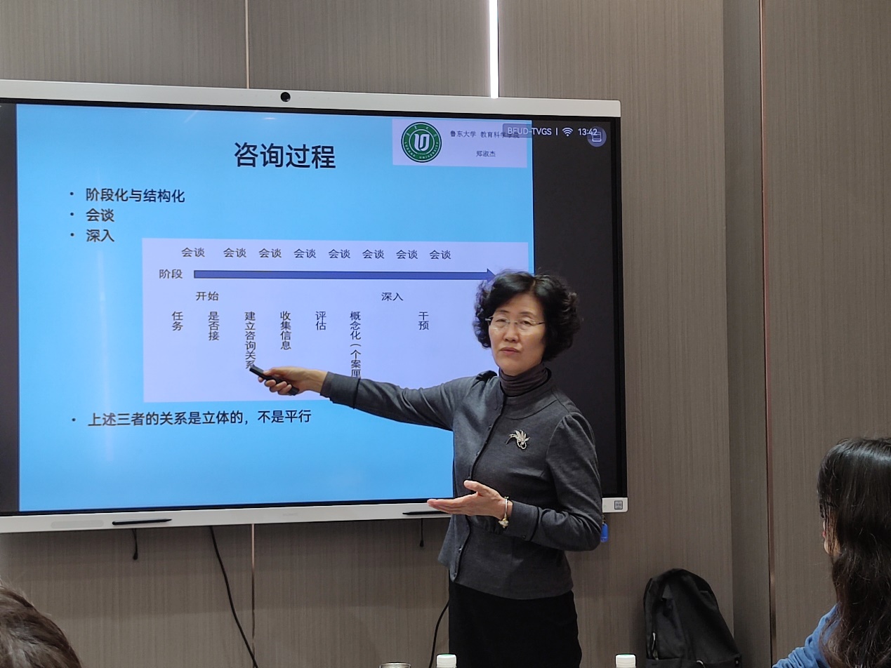 郑淑杰教授结合自己多年的学术研究和实践经历,做了题为《心理咨询的谈话技术》的讲座。她从心理咨询的行业背景、建立良好的咨访关系、咨询技术的使用等方面介绍了心理咨询的应用,重点分享了典型案例,结合精神分析、认知行为疗法、叙事疗法等技术理论来详细解读和演示心理咨询的提问方式、情感反映、聚焦、面质、自我披露等各种谈话技巧。