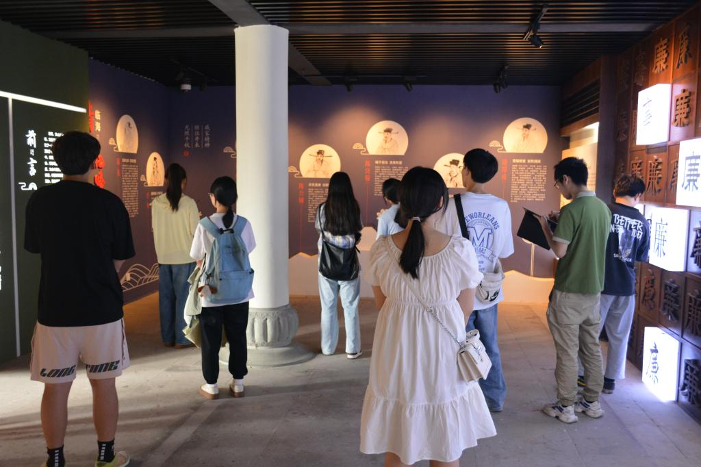 进入祠院,引入眼帘的是戚继光的画像,两侧赫然列着“封侯非我意,但愿海波平”十个大字,廉洁正直的民族英雄形象岸然树立。步入清风堂,历代的清廉人士浮现于眼前,忠谏立身、志国社稷的屈晃,客寒无毡、启慧黎民的郑虔,忠言直谏、训家以俭的陈公辅……翻看古人们的清廉事迹,廉洁之风吹进了每位同学的心中。
