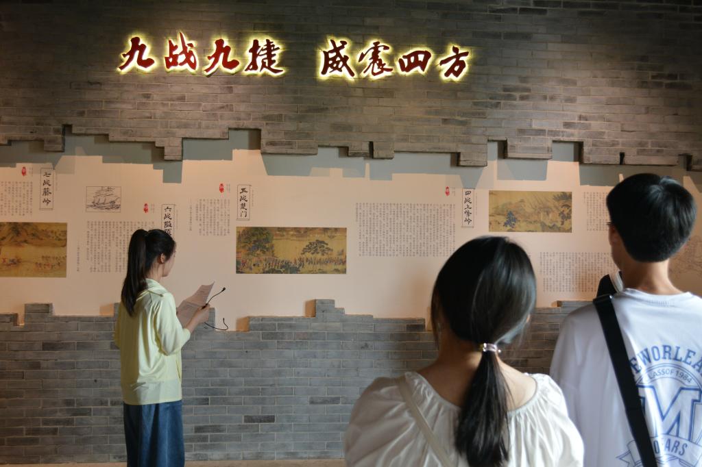 在戚继光文韬武略展中,同学们近距离观赏了戚继光抗倭守城时运用的鸳鸯阵模型图,体悟戚继光先进的军事战法思想。在台州大捷展中,同学们看到了戚继光与一众将士们开会讨论的场景。根据文献介绍,同学们了解到台州大捷是明朝抗倭历史的重要转折点,九战九捷,戚继光就此威震四方。