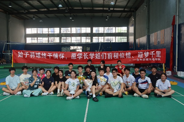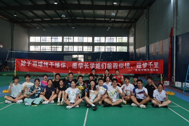 2024年6月13日下午四点半,校羽毛球队毕业赛火热开赛!沈建敏教练和大四的学长学姐组成了20级团体,大一大二大三学弟学妹也分别组成各自的团体,毕业赛一触即发。