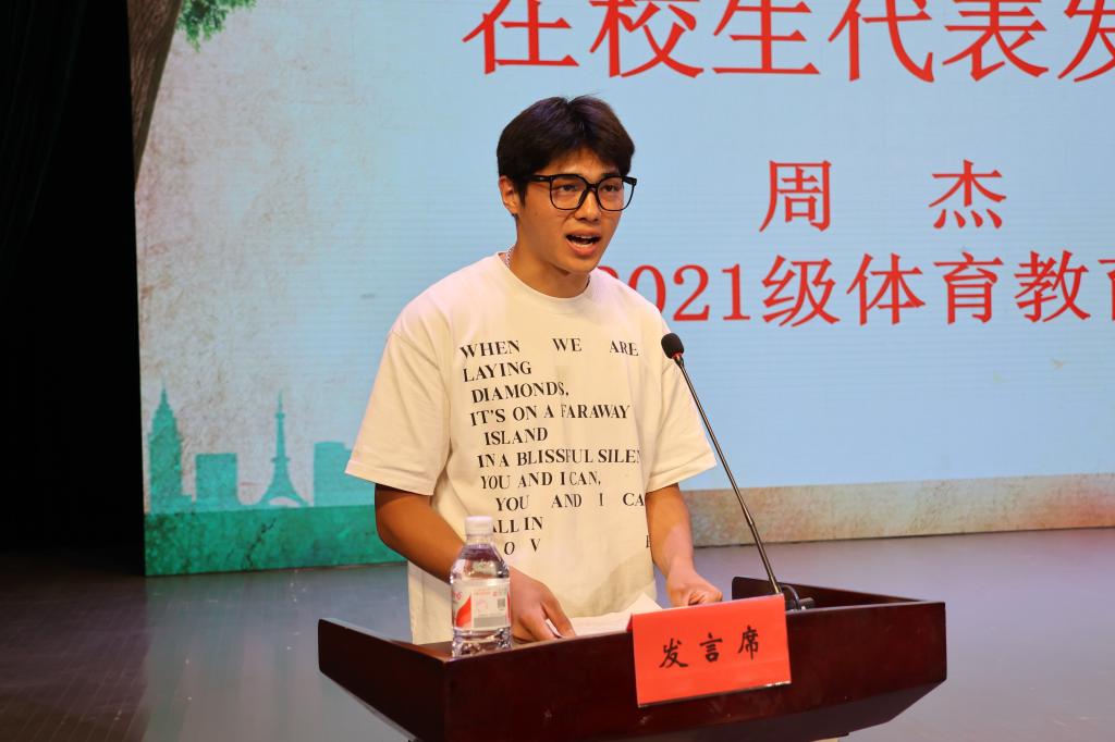 在校生代表周杰祝福学长学姐一帆风顺、前程似锦,在新的征程中,继续书写新的辉煌篇章!
