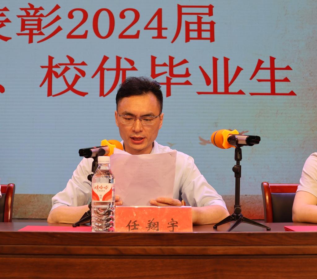 公司副经理任翔宇宣读2024届省优、校优毕业生表彰文件。