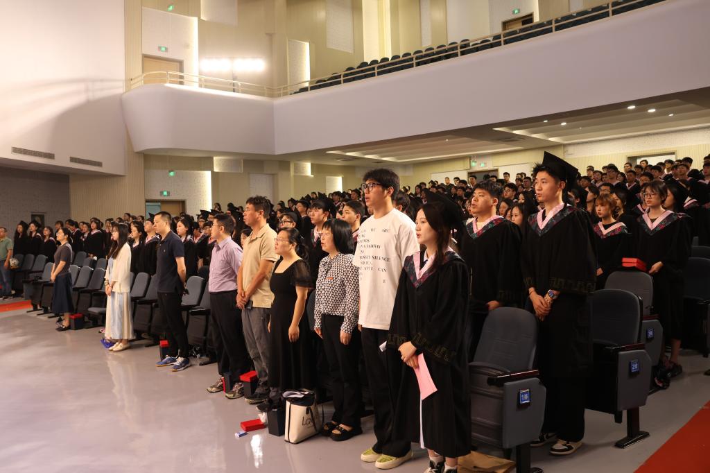 毕业典礼在庄严的国歌声中拉开帷幕。