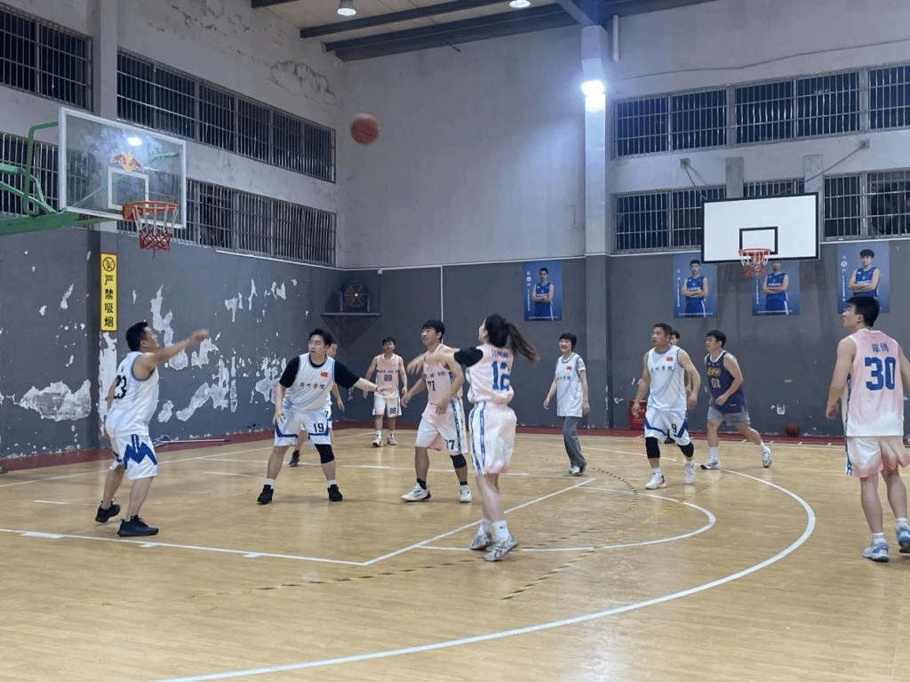 下半场,比赛迅速进入了白热化阶段,赛场上球员们熟练地运球、传球,场外的喝彩声也一浪高过一浪。最终,教工党员队以49:44赢得了比赛。