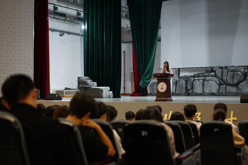 大会伊始,吴磊老师上台致辞,他向团学新成员表示热烈欢迎,以及肯定了团学会成员一直以来的工作,也对团学工作的进一步发展表达了期待。同时,他也对团学会干事们提出三点期望:一是提升责任意识,积极关注校园动态,争做同学与老师、公司间的沟通桥梁;二是找准自身角色定位,发扬团学组织的优良作风,端正工作态度,珍惜在团学会的工作机会;三是要以进取心对待学业,做好示范表率作用。