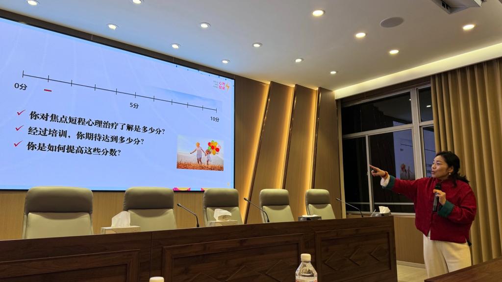 讲座伊始,金老师带领心理委员们复习了老员工常见的心理问题与精神障碍的识别方法,讲解了相关的应对策略。紧接着,金老师由温馨的绘本故事《点》引入了SFBT技术的概念,她指出SFBT(焦点解决短期咨询)是以寻找解决问题的方法为核心的短程心理治疗技术。与以问题为焦点的咨询技术相比,SFBT技术聚焦于解决之道,更加关注来访者的优势、资源和动力。