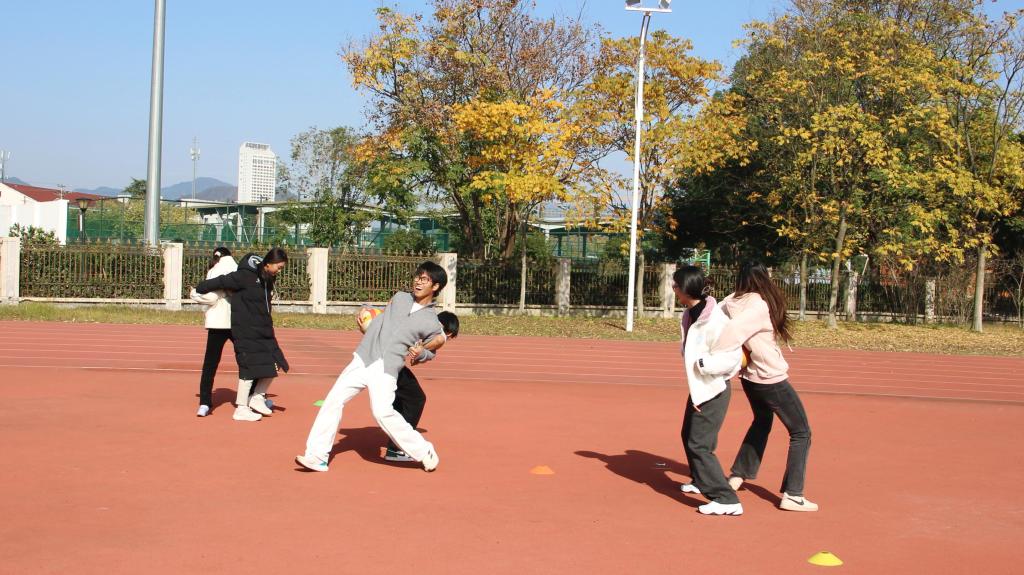 活动伊始,潘慧怡同学详细介绍了比赛规则,此次活动共包含5个项目。“夹球竞走”项目中,选手们背靠背夹着排球,在保持排球不掉的同时加快了步伐,他们神情各异,现场此起彼伏的加油声奏响了欢乐的乐章。