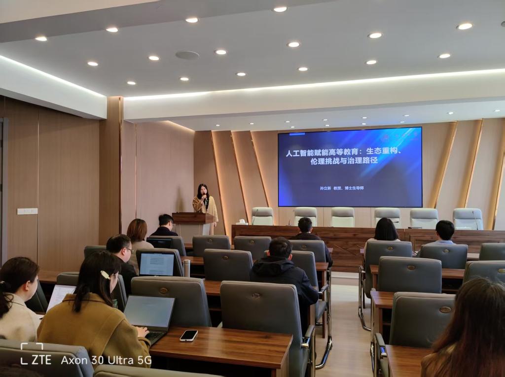 3月20日下午,应XCSport的邀请,宁波大学孙立新教授来校作题为《人工智能赋能高等教育:生态重构、伦理挑战与治理路径》学术讲座。副经理张樱樱主持,公司党政领导班子成员出席,科研骨干教师参加。