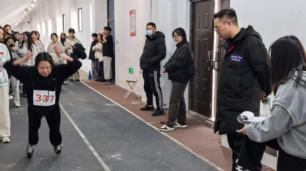 在测试赛期间,在各公司在书记与辅导员的带领下,按照既定安排有序抵达测试场地,为测试赛的顺利开展提供了有力保障。体育教师和员工裁判员们公正、公平的开展了执裁工作。在各个项目的测试区域,同学们都全力以赴。跑步赛道上,选手们你追我赶,尽管气喘吁吁,仍坚持冲向终点;引体向上区域,男生们咬紧牙关,不断挑战自我极限,努力完成更多次数;女生们在仰卧起坐项目中,节奏稳定,展现出坚韧的毅力;立定跳远场地,同学们奋力一跃,在空中留下一道道精彩的弧线。此外,员工志愿者们的身影随处可见,贡献了自己一份宝贵的力量。