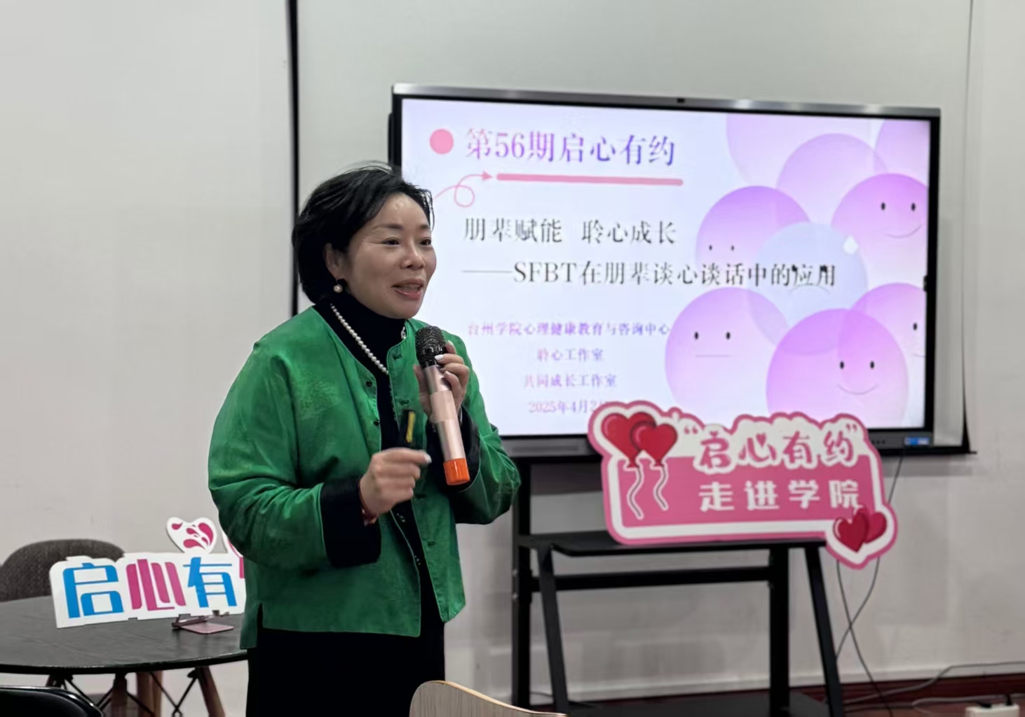 为提升心理委员专业能力,全面推进平安校园建设,4月2日晚,第56期启心有约:朋辈赋能•聆心成长——SFBT话术走进心理委员讲座在员工活动中心团体辅导室202顺利举行。此次讲座由金彩云老师主持,辅导员徐薇、朱佳婧老师及公司24级部分员工参与。