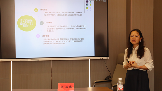 华中科技大学教育科学研究院教授、博士生导师刘亚敏做了以《人工智能时代教育高质量发展的二律背反:赋能悖论与突破路径》为题的学术报告。她首先提出了在教育领域看似合理但又相互矛盾的三对命题:即技术赋能与伦理风险并存、效率提升与人文缺失共生、资源普惠与技术鸿沟对立。并从创新驱动、系统协调、绿色发展、开发发展、共享发展五个维度,对教育高质量发展的政策内涵及理论逻辑进行了深层次分析。她在报告中强调,应将“人的实质自由扩展”贯穿于教育的全过程与各环节。她围绕人工智能时代教育高质量发展的五大悖论,即教育公平性悖论、个性化学习悖论、师生关系悖论、评估体系悖论、伦理困境悖论等进行重点阐释。刘教授认为,人工智能背景下,教育实现高质量发展的突破路径主要有:构建“技术谦抑性”教育伦理框架,推行AI教育资源分配的负面清单制度,开发具有认知干扰功能的反思型AI系统,建立教育技术社会影响的动态补偿机制。