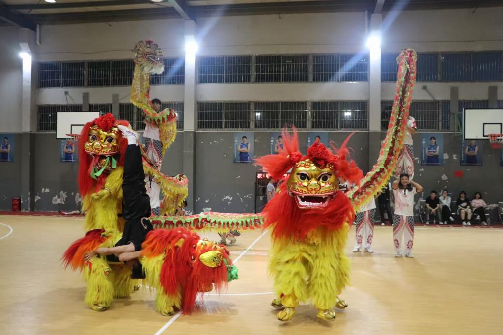 在激烈的比赛开始前,精彩的暖场表演率先点燃全场气氛。功夫龙狮队带来节目“金麟破晓狮啸天”,用精彩绝伦的表演为即将毕业的学姐学长们送上“承运如鹏”的美好祝福;紧接着,健美操队化身活力四射的篮球宝贝闪亮登场。她们以热情奔放的舞姿、灿烂甜美的笑容,为赛场增添无限光彩。青春的气息扑面而来,为这场赛事注入了满满的激情与活力。